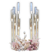 Transform your special day into an exquisite affair with the "5-Arm Acrylic Candelabra Wedding Centerpiece." Standing at an impressive 46.4 inches tall, this centerpiece becomes the heart of any table setting, bathing guests in a soft, ethereal glow that only candlelight can achieve. Its clear acrylic structure reflects light beautifully, adding a modern, sophisticated touch to your event's aesthetic.