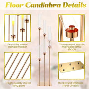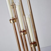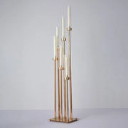 The candelabra is made of clear acrylic tubes, so it will not obstruct the view of your guests or the centerpieces around it. It has 6 arms, each of which can hold a pillar taper candle or LED taper candle. The candelabra comes with a square base that helps to keep it stable.