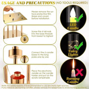 - 6 arms can hold 6 taper candles (Use only LED taper Candles)