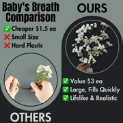 Size: Our big baby's breath flowers measure approx 24.5 inches tall. Each stem is structured to replicate the natural growth of genuine gypsophila flowers.