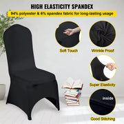 - Stretch fabric and elastic bottom securely hug the chair, staying put even during busy events.