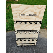 This elegant champagne wall is the perfect way to add a touch of luxury to your next event. Made of sturdy 3/4 inch plywood and metal shelves, it can hold up to 24 champagne glasses. The wall is 48 inches tall and 24 inches wide, making it the perfect size for small events.