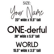 • Our custom vinyl decals are all about personalization, allowing you to tailor your decorations to your child's unique celebration. Whether it's just their name or the full "Name's One-derful World," you have the freedom to choose.