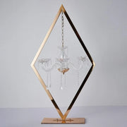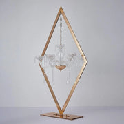This elegant diamond shaped wedding table centerpiece candle holder is the perfect way to add a touch of sophistication to your wedding tablescape. The candelabra features six arms that can hold votive candles. The clear acrylic allows the light from the candles to shine through, creating a beautiful and inviting glow.