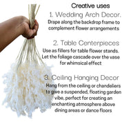 • Event Decor: Ideal for wedding planners and event decorators, these faux hanging flowers create stunning wedding floral ceilings and beautiful backdrops. Use white cascading flowers for a romantic touch or mix with other blooms for a custom arrangement.
