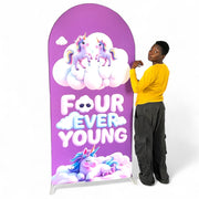 Four Ever Young Fabric Arch Cover - 4th Birthday Party Decor