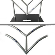 - The silver frame is paired with a black weighted base, providing a sturdy foundation to keep the backdrop secure during your event.