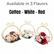 Looking to elevate your wedding table decor without overcomplicating things? Our Hoop Floral Centerpiece is your answer to stunning and simple wedding table decorations. Hand-arranged with premium silk roses and baby’s breath flowers, this centerpiece oozes elegance and sophistication. Available in three stunning colors—Coffee, White, and Red—it’s the ultimate wedding accessory for creating dreamy table settings.
