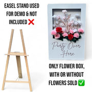 - The easel stand is used for demo purposes and not sold with the flower box. Please purchase an easel stand separately.
