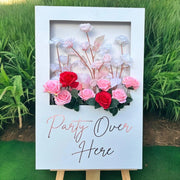 - Personalize the sign with your own message, such as "Party Over Here," "Welcome to our Wedding," "Happy Birthday Kim," "Khloe's Baby Shower," or messages for bridal showers, engagements, graduations, and more, making it a truly unique addition to your event.