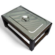 - While the wooden stand provides a stable and attractive base, the stainless steel chafing dishes ensure your food remains at the perfect serving temperature.