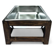 - Material: High-quality wood with an espresso rustic finish for the stand, and stainless steel for the chafing dishes.