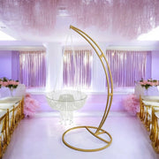 - The gold metal hanging frame stands 6.8ft tall and features a sturdy 3ft diameter round base, ensuring stability while displaying your cake with a striking vertical presence.