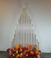 This exquisite Tall Candelabra, standing at an impressive 6 feet, transforms any wedding into a space of opulence and grandeur. The shiny gold finish reflects light beautifully, bringing a warm, inviting glow to your venue. Whether you're planning an intimate ceremony or a lavish celebration, these candelabras are sure to make a statement.