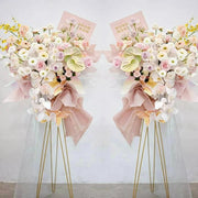 Elevate the atmosphere of any event with the Tripod Tall Gold Wedding Centerpieces, a versatile decoration perfect for various occasions. These stunning tripods exude elegance and practicality, designed to hold either exquisite flower arrangements or buoyant, cheerful balloons. Whether they're gracing a wedding aisle, enhancing a baby shower, or adding a touch of sophistication to hotel entryways, these centerpieces are sure to impress.