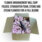 - The flower arrangement will ship folded to protect it during transit. Upon arrival, simply straighten the foam and steam the flowers to achieve a full, blooming effect.