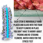 - Each flower is hand-glued into the floral foam to prevent stems from falling out, ensuring durability and ease of setup.