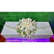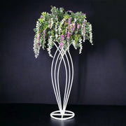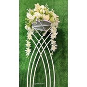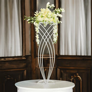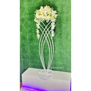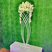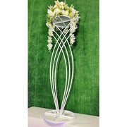 This contemporary Wedding Table Geometric Centerpiece, standing an impressive 40" tall, marries modern design with classic elegance. With its sleek white frame and optional ivory-themed flower arrangements, it offers a fresh take on traditional wedding decor. The geometric design adds a touch of modern sophistication, making it an ideal statement piece for your wedding tablescape.