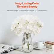 White Hydrangea Flowers - 6 Inch Faux Lifelike Stems 10-Pack