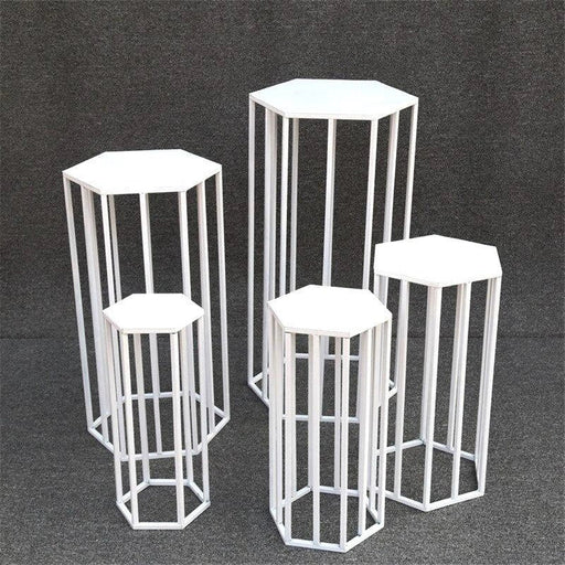 View full detailsHexagon 3-Piece Wedding Cake Pedestal StandsElevate the elegance of your special event with these contemporary Hexagon Wedding Cake Pedestal Stands...