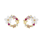 14K Gold and Sterling Silver Opal and Resin Open Flower earrings with Crystals