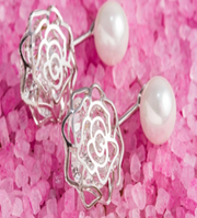 The 14K Gold Cultured Pearl Rose Drop Earrings With Crystals are a stunning and elegant accessory that feature a beautiful and feminine design. The earrings are crafted from high-quality 14k gold plating, and feature a delicate rose shape that is adorned with sparkling crystals and a lustrous cultured pearl.