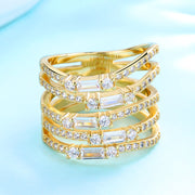 Our 14K Gold Five-Row Ring With Swarovski Crystals is a must-have for any woman who loves sparkle. With its premium quality feel and multi-layer, you will feel like royalty wearing these rings. The perfect gift for all women in your life and one that they will never take off! They are crafted in high-quality material and are set with sparkling Swarovski Crystal to create an amazing contrast of textures. This ring will add instant sophistication to any ensemble. The rings are also hypoallergenic, so you don't have to worry about skin reactions.
