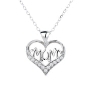 14K Gold or Sterling Silver MOM Heart Pendant Necklace with crystals from Swarovski