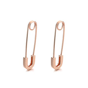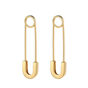 The design of the earrings is inspired by a classic safety pin, with a long, slender shape and a curved hook that threads through the earlobe. The pin is finished with a secure clasp that keeps the earrings in place.