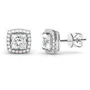 14K Gold over Sterling Silver Simulated Diamond Halo Stud Earrings