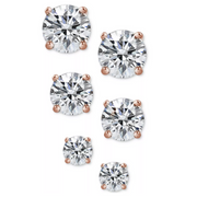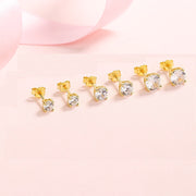 14K Gold over Sterling Silver Stud Earrings with Simulated Diamonds set of 3 (6 total pieces)