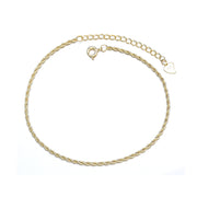 This minimalistic design 14K Gold Plated Rope Chain Anklet is both comfortable and stylish. Perfect for everyday wear on its own or stacked with your favorite pair of sandals. This rope chain is designed to fit comfortably around the ankle and make a statement. This piece boasts a spring ring closure creating a secure fit for the wearer for all-day use. A perfect addition to any jewelry collection. Electroplated with 14K gold to assure extreme durability and shine, and can be worn on any occasion.