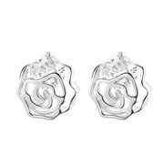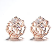 14K Rose or Sterling Silver Caged Rose Stud Earrings with Floating Crystals