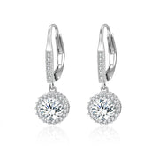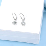 14K White Gold Halo Lever-back Earrings