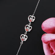 14K White Gold Paw Print Hearts with Garnet Gemstones (Animal Lovers) Bracelet
