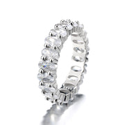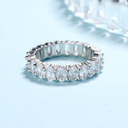 14K White Gold Plated Oval Cut Eternity Ring with Crystals