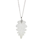 This 24" Handmade Natural Oak Leaf Pendant Necklace in White Gold is a beautiful and unique piece of jewelry that celebrates the beauty of nature. The pendant is meticulously crafted from a natural oak leaf that has been preserved and plated in white gold.