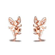 18K Rose Gold and Sterling Silver Crystal Fairy Stud Earrings