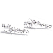 The 18K White Gold Heart Crystal Climber Earrings are a stunning and elegant piece of jewelry that will add a touch of sophistication to any outfit. These earrings feature a unique and modern design that resembles a climbing vine of sparkling crystals in the shape of hearts.