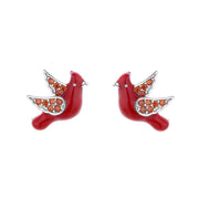 The earrings are plated in high-quality 18K white gold, which gives them a lustrous and reflective finish that is both durable and long-lasting. The white gold plating also enhances the brilliant color of the ruby gemstone, creating a striking contrast against the robin design.