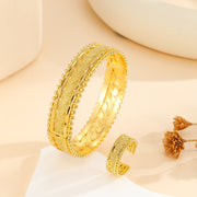 Exquisite gold bracelets and rings with intricate floral designs and bead decorations on the edges, symbolizing wealth and nobility, suitable for women's festivals, weddings, and gifts for wives and mothers in Dubai, Africa, Vietnam, and the Middle East