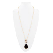 Experience the elegance of our Abby Black Onyx Golden Bronze Drop Necklace! This piece features a black onyx pendant, set in a golden bronze bezel, suspended from a bronze ring centerpiece and golden bronze chain. With a length of 18 inches, a weight of just 1 ounce, and a pendant that is 1 inch wide and 1.5 inches long this necklace is lightweight and luxurious. Hand-crafted and meticulously finished, this necklace exudes quality and sophistication.
