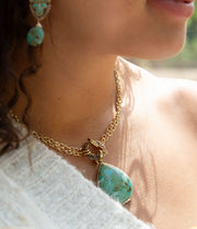 Abby Blue Turquoise and Golden Bronze Pendant Necklace