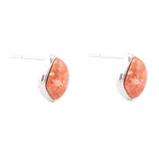 Be unique and bold with these sterling silver and orange sponge coral studs. The abstract shaped stone is encased in a sleek sterling silver stud for a balanced and eye-catching look. With a width of .4" at it's widest point and .45" in length, these statement studs add the perfect finishing touch to any outfit. Natural variances are part of the beauty of our genuine stones. Your piece will vary slightly from the image shown.