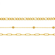 Adriana 3-Piece Stackable Bracelet Trio Set, Beaded, Figaro, Paperclip Link