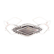 Black mother of pearl shimmers in a diamond shape surrounded by sterling silver in a delicate cuff bracelet. Top of bracelet is 1.75" across. Fits most wrists.