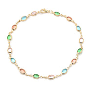 The Anklet with Crystals in 18k Yellow Gold is a luxurious and elegant piece of jewelry that sparkles and shines with every movement. The anklet is crafted from high-quality 18k yellow gold, which gives it a rich and warm tone that complements the sparkling crystals perfectly.