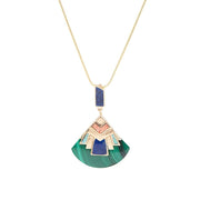 Art Deco Colorful Inlay Golden Pendant Necklace
