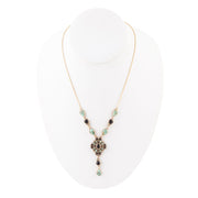 Gorgeous and unique, our Onyx and Turquoise Barcelona Y-Necklace makes a perfect statement piece. Hand-crafted with genuine Bronze, Turquoise, and Onyx, this necklace is sure to turn heads! Fitted with an adjustable 18"-20" extender chain, it makes a great gift for someone special. Sparkling and lightweight at just .63 oz, you won't want to miss out on this stunner.