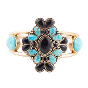 Barcelona Blue Turquoise Black Onyx Golden Cuff Bracelet